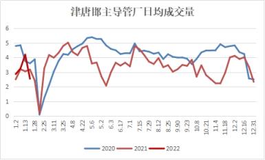 從焊鍍管品種來(lái)看,1月在統(tǒng)計(jì)11家管廠日均出貨量3.33萬(wàn)噸,高于上年冬儲(chǔ)同期11.11%,低于2020年10.96%。1月主導(dǎo)管廠通過(guò)現(xiàn)價(jià)優(yōu)惠、預(yù)付款及協(xié)議超量?jī)?yōu)惠、遠(yuǎn)期保價(jià)政策等提高中大協(xié)議戶冬儲(chǔ)操作的積極性,隨著盤面情緒由謹(jǐn)慎轉(zhuǎn)向偏積極,各地貿(mào)易商今年儲(chǔ)貨量在正常庫(kù)存的10%-20%之間。中央經(jīng)濟(jì)工作會(huì)議將管道建設(shè)工作提升到新高度,針對(duì)“城市血管”作出專門批示,未來(lái)利好老舊小區(qū)改造、水利、能源輸送用管。