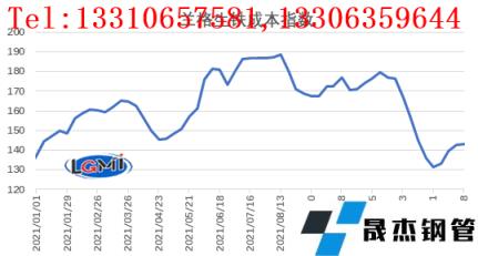2022年1月份生鐵成本指數(shù)為139.7點(diǎn),較上月下降5.1%。同期,綜合厚壁鋼管價(jià)格指數(shù)小幅回落,月均值為5067元/噸,較上月下降0.8%;1月份成本降幅大于厚壁鋼管均價(jià)降幅,可見1月份鋼企盈利空間有所改善。