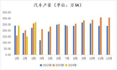 據中國汽車工業協會統計,2024年3月,汽車產銷分別完成268.7萬輛和269.4萬輛,環比分別增長78.4%和70.2%,同比分別增長4%和9.9%。2024年1-3月,汽車產銷分別完成660.6萬輛和672萬輛,同比分別增長6.4%和10.6%。