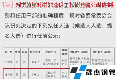 免責聲明:本網站(山東聊城晟杰無縫鋼管廠m.www-86604.com)刊載的“大變動!涉及多家鋼企董事長、多地市委書記、北大系主任!”等均源于網絡,版權歸原作者所有,且僅代表原作者觀點,本文所載信息僅供參考。轉載僅為學習與交流之目的,如無意中侵犯您的合法權益,請及時聯系刪除。本網站刊登此篇文章并不意味著本站贊同其觀點或證實其內容的真實性,我們不對其科學性、嚴肅性等作任何形式的保證。如果侵犯了您的版權,請盡快聯系我們予以撤銷,謝謝合作!