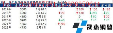 截至1月25日,貴陽市場主流建筑鋼材價格4730元/噸,較2021年春節前價格高出380元/噸,幅度達8.7%,為近年來春節前最高水平。2021年國慶之后,在國家宏觀調控下,原燃料價格幾近腰斬,帶動鋼價走弱,疊加房地產不斷暴雷,需求不及預期,短短半個月時間貴陽建材價格下跌近1300元/噸,跌幅達22.4%,隨后在金融、基建、冬奧會等利好刺激下逐步修復,春節前鋼材價格持續偏強,而全國限產不斷,本地電爐企業于12月初基本停產減產,供應端壓力較小,全國庫存處于較低位置,冬儲政策不及預期,大部分無縫鋼管廠無冬儲政策,僅資金政策給與貿易商,商家普遍冬儲意愿較差,節前無縫鋼管廠拉漲更是讓貿易商對節后價格不容樂觀,同時終端抵觸高價情緒愈發強烈,整體觀望情緒較濃。據歷史數據來看,2017年以來,除去2020年受全球公共突發事件影響鋼價持續走弱,其余年份春節后貴陽建筑鋼材價格前兩周上漲的概率達50%,前兩周下跌概率為0;春節后前三周上漲概率達50%,前三周下跌概率達50%;春節后前四周上漲概率達50%,下跌概率達25%。整體來看,節后鋼價偏強運行概率較大。