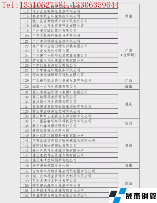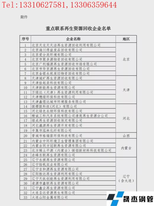 重點(diǎn)聯(lián)系再生資源回收企業(yè)名單: