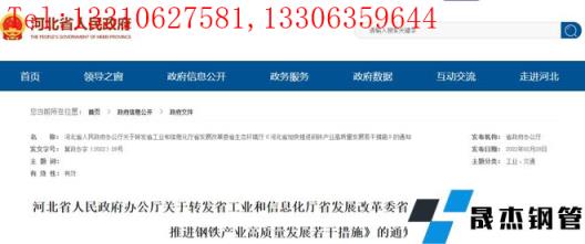 免責聲明:本網站(山東聊城晟杰無縫鋼管廠m.www-86604.com)刊載的“重磅文件出爐!河北鋼鐵大調整!嚴查、重組、退出...”等均源于網絡,版權歸原作者所有,且僅代表原作者觀點,本文所載信息僅供參考。轉載僅為學習與交流之目的,如無意中侵犯您的合法權益,請及時聯系刪除。本網站刊登此篇文章并不意味著本站贊同其觀點或證實其內容的真實性,我們不對其科學性、嚴肅性等作任何形式的保證。如果侵犯了您的版權,請盡快聯系我們予以撤銷,謝謝合作!