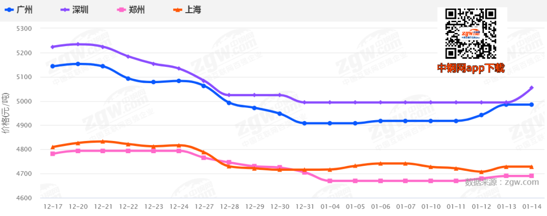 截至1月14日,全國237家流通商周均成交量11.92萬噸,周均成交量環(huán)比減少2.84萬噸,減幅為19.24%。據不完全統計,40家電弧爐獨立建筑鋼材生產的鋼廠中,已有25家停產,占62.5%。其中,1月1日前停產的鋼廠占24%,而1月1日至1月10日停產的鋼廠占60%,處于鋼廠集中停產階段。根據市場收集的信息來看,獨立電弧爐建筑鋼材鋼廠平均成本4817元/噸,周環(huán)比上升93元/噸。當前電弧爐鋼廠虧損嚴重,尤其是飽和生產的情況下,噸鋼虧損超百元。