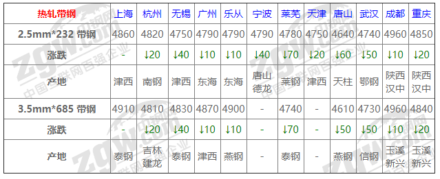 全國12個主要市場2.5mm*232 帶鋼平均價格4793元/噸,較上個交易日下調30元/噸。