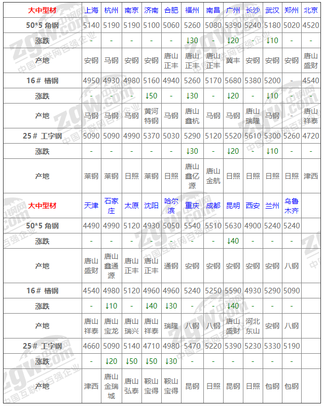 全國23個主要市場50*5 角鋼平均價格5131元/噸,較上個交易日下調(diào)4元/噸。