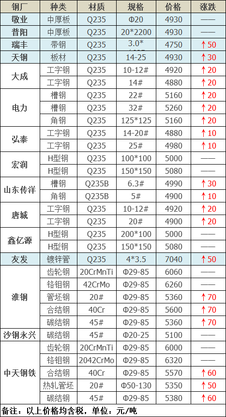 今日板、型、管、特鋼共15家鋼廠調價發布,其中: