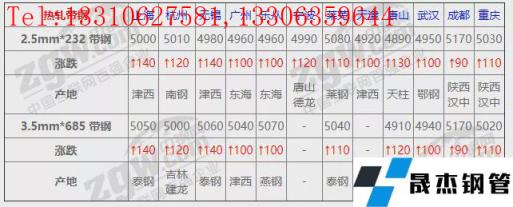 全國12個主要市場2.5mm*232 帶鋼平均價格4995元/噸,較上個交易日上調117元/噸。