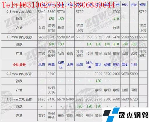 全國(guó)23個(gè)主要市場(chǎng)1.0mm 冷軋板卷平均價(jià)格5599元/噸,較上個(gè)交易日下調(diào)13元/噸。