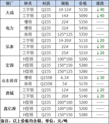 23日12:00起江陰西城刨花下調30-40,其他不變,調后:精爐料4000重廢3890中廢3830普通爐料3770鋼筋頭4000沖子3890-3940冷熱軋料3790-3890爐料壓塊3600鐵皮壓塊3300鋼刨花3660數控刨花3570普通刨花3480刨花壓塊3420刨花長絲3360含稅單位:元/噸。