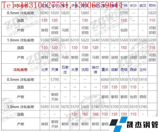全國23個主要市場1.0mm 冷軋板卷平均價格5662元/噸,較上個交易日上調19元/噸。