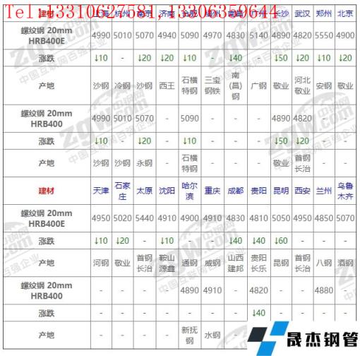 全國24個主要市場螺紋鋼 20mm HRB400E平均價格4995元/噸,較上個交易日下調(diào)20元/噸。