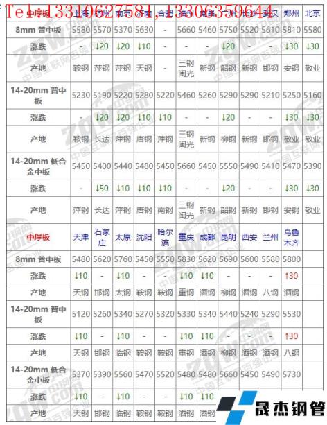 全國23個主要市場14-20mm 低合金中板平均價格5489元/噸,較上個交易日下調(diào)8元/噸。