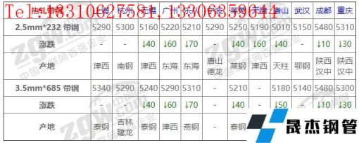 全國12個主要市場2.5mm*232 帶鋼平均價格5238元/噸,較上個交易日下調(diào)30元/噸。