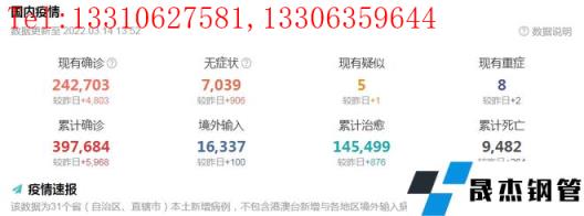 截止3月14日下午1點52分,全國現有確診病例242703例,較昨日新增4803例,無癥狀感染者7039例,較昨日新增906例。目前確診病例集中在吉林、長春、青島、深圳、寶雞、天津、上海、廊坊、滄州、西安等地,上述地區及周邊關聯地區不斷上調防控疫情等級。