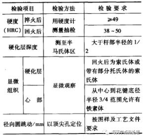 ▼表13半軸表面感應(yīng)淬火的質(zhì)量檢驗