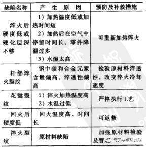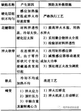 ▼表15半軸表面感應(yīng)淬火常見缺陷的預防及補救措施