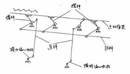 當升降驅動電機驅動偏心軸轉動時,通過連桿和拉桿使步進框架上、下運動,從而帶動步進梁運動。因為偏心軸帶動的擺桿和活動框架是滾動接觸,這樣就可以保證活動梁在提升驅動過程中只有升降運動,而無平移運動。同樣當橫移驅動電機驅動偏心軸轉動時,通過連桿使擺動機構使運動框架水平移動。