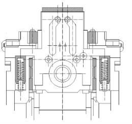 工作原理:需要調整輥縫時,若需要壓輥縫,通過油口向缸體內加油增壓,推動缸頭下壓。若需要抬輥縫,油口向外排油減壓,在平衡力作用下軋輥抬起。液壓缸頭的最大行程為105mm。