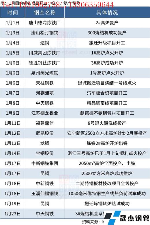 免責聲明:本網站(山東聊城晟杰無縫鋼管廠m.www-86604.com)刊載的“1月國內20個鋼鐵項目開工、投產和復產”等均源于網絡,版權歸原作者所有,且僅代表原作者觀點,本文所載信息僅供參考。轉載僅為學習與交流之目的,如無意中侵犯您的合法權益,請及時聯系刪除。本網站刊登此篇文章并不意味著本站贊同其觀點或證實其內容的真實性,我們不對其科學性、嚴肅性等作任何形式的保證。如果侵犯了您的版權,請盡快聯系我們予以撤銷,謝謝合作!