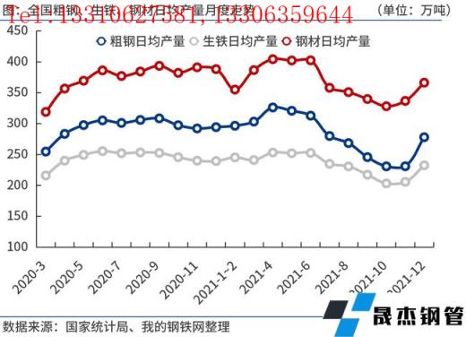 12月份,全國粗鋼日均產(chǎn)量278.04萬噸,環(huán)比大增20.3%,超過市場預(yù)期。一方面,由于11月份鐵礦石、焦炭等原燃料價(jià)格大幅下跌,12月份無縫鋼管廠家生產(chǎn)成本明顯下降,效益好轉(zhuǎn)推升擴(kuò)產(chǎn)意愿。另一方面,2021年全國粗鋼產(chǎn)量壓減工作提前完成,為此12月份各地?zé)o縫鋼管廠家普遍出現(xiàn)復(fù)產(chǎn)。