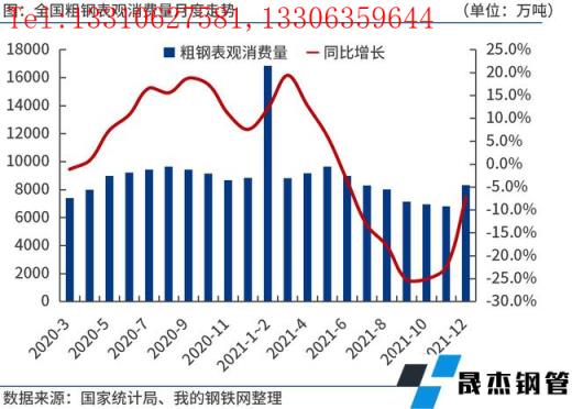 2021年12月份,全國粗鋼日均產(chǎn)量278.04萬噸,環(huán)比大增20.3%,預(yù)計(jì)1月份產(chǎn)量變化不大。臨近春節(jié)假期,鋼市進(jìn)入傳統(tǒng)需求淡季。不過,由于多部門集中出臺(tái)穩(wěn)增長政策,市場情緒得到提振,加之無縫鋼管廠家集中補(bǔ)庫,原燃料價(jià)格強(qiáng)勢(shì)上漲,推動(dòng)鋼價(jià)震蕩偏強(qiáng)運(yùn)行。今年我國基建投資有望發(fā)力,但房地產(chǎn)投資不容樂觀,鋼鐵消費(fèi)或弱于去年。如果節(jié)后無縫鋼管廠家適度控制產(chǎn)能釋放,合理安排復(fù)工復(fù)產(chǎn)進(jìn)度,實(shí)現(xiàn)供需動(dòng)態(tài)平衡,鋼價(jià)或延續(xù)震蕩偏強(qiáng)運(yùn)行。