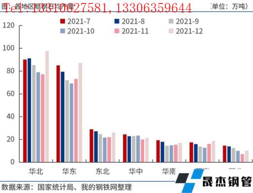 2021年12月份,華北、華東、東北、華中、華南、西南、西北等地區(qū)粗鋼日均產(chǎn)量分別為97.6萬噸、87.1萬噸、26.2萬噸、21.4萬噸、17.0萬噸、18.7萬噸和10.2萬噸,分別較上月增加20.5萬噸、14.0萬噸、4.1萬噸、1.3萬噸、1.6萬噸、2.6萬噸和3.0萬噸。