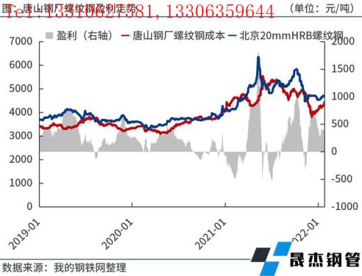 成本方面,據(jù)筆者測(cè)算,1月底唐山長流程無縫鋼管廠家螺紋鋼噸鋼毛利(成本不包含三項(xiàng)費(fèi)用、折舊等)300元/噸左右。由于1月份原燃料價(jià)格漲幅高于鋼價(jià),導(dǎo)致無縫鋼管廠家效益有所下滑,部分電爐廠因虧損減產(chǎn)。