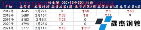 小編匯總近5年春節后四周優特鋼各品種均價變化情況,以供參考。