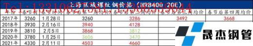二:近五年上海建筑厚壁無縫鋼管春節(jié)均價(jià)走勢(shì):