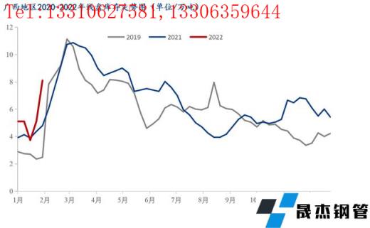 本周廣西建筑厚壁無縫鋼管價格小幅上漲,較節前上漲80元/噸。春節期間由于需求停滯,貿易商提貨較少,多數滯留在廠內,因而社庫庫存整體增加幅度較往年有所降低。商家整體心態尚可,對后市觀望情緒濃厚。截至昨日(正月初六)據我網跟蹤調研統計,廣西市場庫存建筑厚壁無縫鋼管34.6萬噸,較節前相比增加8.4萬噸,較去年節后同期相比減少5.9萬噸。從區域數據來看,南寧市場主要庫存資源為桂萬鋼,其商戶資源多數在廠內,只要節前零星商戶的資源到本倉庫,以及有云南材等資源,因而整體增加了0.8萬噸;而柳州市場由于柳鋼資源多數都會發往物流園,因而資源相對增加幅度較高,較春節前增加7萬噸。從整體庫存來看,廠家和社會庫存壓力尚在,但是隨著后期需求的釋放,或將有所緩解,短期本地市場價格或將繼續面臨小幅上漲。