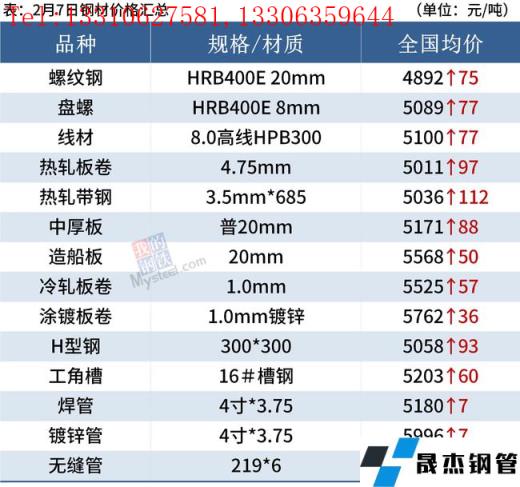 建筑厚壁無(wú)縫鋼管:2月7日,全國(guó)31個(gè)主要城市20mm三級(jí)抗震螺紋鋼均價(jià)4892元/噸,較節(jié)前(1月30日)上漲75元/噸。短期來(lái)看,由于需求未真正啟動(dòng),現(xiàn)貨市場(chǎng)上漲主要還是情緒面推動(dòng)。短期需要關(guān)注消費(fèi)恢復(fù)情況,若市場(chǎng)存在高價(jià)格低需求,則需謹(jǐn)慎貿(mào)易商集中兌現(xiàn)利潤(rùn)。預(yù)計(jì)8日國(guó)內(nèi)建筑厚壁無(wú)縫鋼管價(jià)格或?qū)⒗^續(xù)趨強(qiáng)運(yùn)行。
