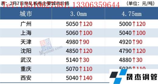 熱軋板卷:2月7日,全國(guó)24個(gè)主要城市4.75mm熱軋板卷均價(jià)5011元/噸,較節(jié)前(1月30日)上漲97元/噸。目前整體市場(chǎng)上漲幅度較大,在冬奧會(huì)限產(chǎn)背景下,需求將逐漸趨于好轉(zhuǎn),現(xiàn)貨市場(chǎng)情緒較為樂觀,各地厚壁無(wú)縫鋼管現(xiàn)貨價(jià)格全面上漲。春節(jié)期間,主流無(wú)縫厚壁鋼管廠家均上調(diào)2月出廠價(jià),截止2月6日,全國(guó)五大主要厚壁無(wú)縫鋼管品種總庫(kù)存共增加477.47萬(wàn)噸至2030.02萬(wàn)噸,較去年同期下降27%,環(huán)比增幅30.77%。故預(yù)計(jì)8日熱軋板卷價(jià)格或?qū)⒎€(wěn)中上行。