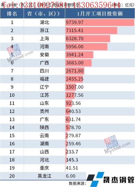 資料顯示,1月廣西、河南、安徽、浙江、四川5省進(jìn)行了全省集中開工活動,而湖北省由于各市縣區(qū)的密集開工,總投資額近1萬億元,排名位居榜首。具體來看,1月湖北省共進(jìn)行了26次開工活動,其中1月18日,武漢市199個億元以上重大項目集中開工,總投資3277億元,包括68個先進(jìn)制造業(yè)項目、50個現(xiàn)代服務(wù)業(yè)項目、51個基礎(chǔ)設(shè)施和生態(tài)環(huán)境項目、30個社會民生及其他項目,是湖北省最大的一次開工活動。