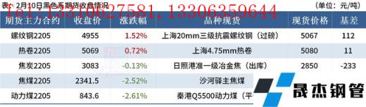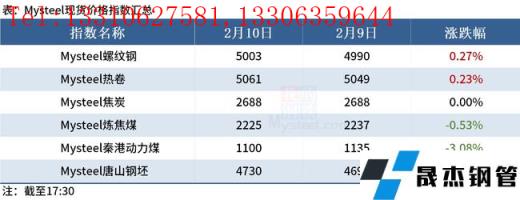 ◎ 2月10日,統(tǒng)計新口徑114家無縫厚壁鋼管廠家進口燒結(jié)粉總庫存3431.83萬噸,燒結(jié)粉總?cè)蘸?7.38萬噸。原口徑64家無縫厚壁鋼管廠家進口燒結(jié)粉總庫存1643.78萬噸,燒結(jié)粉總?cè)蘸?3.83萬噸,庫存消費比48.6,燒結(jié)礦中平均使用進口礦配比86.12%,無縫厚壁鋼管廠家不含稅平均鐵水成本3152元/噸。詳情>>