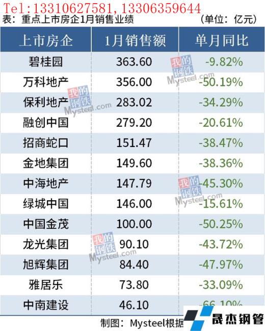 免責聲明:本網站(山東聊城晟杰無縫鋼管廠m.www-86604.com)刊載的“13家重點房企1月銷售同比大幅下滑,房地產市場低溫運行”等均源于網絡,版權歸原作者所有,且僅代表原作者觀點,本文所載信息僅供參考。轉載僅為學習與交流之目的,如無意中侵犯您的合法權益,請及時聯系刪除。本網站刊登此篇文章并不意味著本站贊同其觀點或證實其內容的真實性,我們不對其科學性、嚴肅性等作任何形式的保證。如果侵犯了您的版權,請盡快聯系我們予以撤銷,謝謝合作!