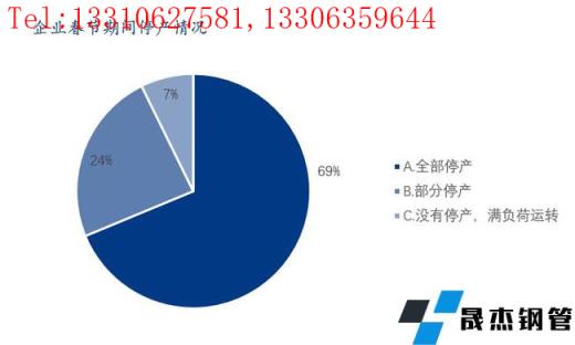 本次調(diào)研樣本企業(yè)中春節(jié)期間全部停產(chǎn)的占比69%;部分停產(chǎn)的占比24%;沒有停產(chǎn)且滿負(fù)荷運轉(zhuǎn)的企業(yè)占比7%。