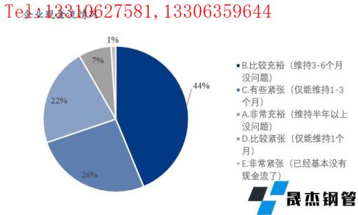 6、企業(yè)現(xiàn)金流偏寬松。本次調(diào)研樣本企業(yè)中現(xiàn)金流比較充裕和非常充裕的占比66%,有些緊張的占比26%;比較緊張和非常緊張的占比8%。