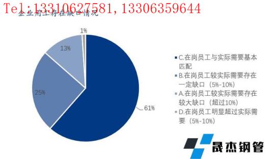 本次調(diào)研樣本企業(yè)中在崗員工數(shù)量較實際需要存在缺口的企業(yè)占比38%;在崗員工數(shù)量較實際需要基本匹配的占61%;在崗員工數(shù)量超過實際需要的占比1%。