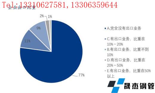 本次調(diào)研樣本企業(yè)中,77%完全沒有出口業(yè)務(wù),出口業(yè)務(wù)比重在20%以內(nèi)的占比為20%,出口業(yè)務(wù)比重在20%以上的占比為3%。