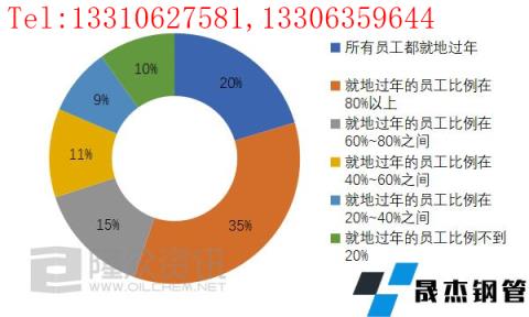 2022年春節企業整體放假停工的比例有所提高。參與調研樣本企業中,企業所有員工放假停工占比在39%,相比上年上升5個百分點;放假停工比例不到20% 的占比在14%;放假停工比例在80%以上的占比為18%,在放假停工比例在20%-80%之間占比為29%.