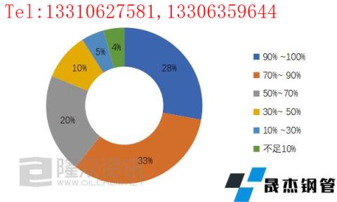 本次調研期間企業產能利用率略有下降。參與調研樣本企業中,產能利用率90%-100%占比為28%,較上年度下降5個百分點;。產能利用率70%-90%的企業占比33%,持平;產能利用率不足50%的企業占比合計19%,上升了4個百分點。