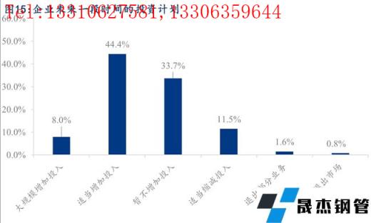 據調研,33.7%的企業在未來一段時間暫不增加投入,52.4%的企業在未來一段時間有投資計劃,其中大規模增加投入的企業占比8.0%,而適當縮減或退出部分業務的企業占比13.8%左右。