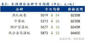 今日全國(guó)部分品種均價(jià)表現(xiàn)較弱,整體跌幅為16~54元/噸。