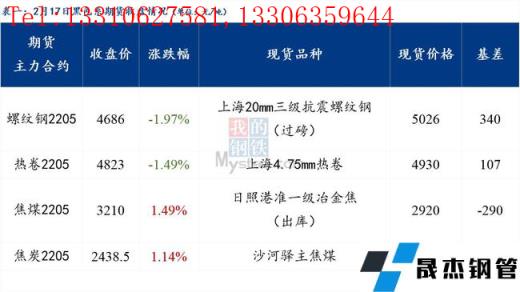免責聲明:本網站(山東聊城晟杰無縫鋼管廠m.www-86604.com)刊載的“2022年02月17日日報:鋼材_無縫鋼管價格指數下跌20.19元/噸”等均源于網絡,版權歸原作者所有,且僅代表原作者觀點,本文所載信息僅供參考。轉載僅為學習與交流之目的,如無意中侵犯您的合法權益,請及時聯系刪除。本網站刊登此篇文章并不意味著本站贊同其觀點或證實其內容的真實性,我們不對其科學性、嚴肅性等作任何形式的保證。如果侵犯了您的版權,請盡快聯系我們予以撤銷,謝謝合作!