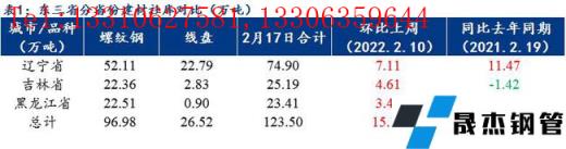 本周東三省建筑厚壁無縫鋼管現(xiàn)貨庫存整體較上周增加15.16萬噸,相比上周37.40%的增速本周明顯放緩,其中螺紋鋼現(xiàn)貨庫存96.98萬噸,線盤26.52萬噸,建材社會(huì)庫存總量為123.50萬噸,較上周增15.16萬噸,增幅13.99%。相比春節(jié)期間累庫較多,本周東北區(qū)域內(nèi)建材現(xiàn)貨增加不多,各市場倉庫到貨一般。
