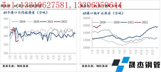 自2021年11月中旬以來,鐵礦石價格上漲400元/噸,漲幅達69.32%;相應(yīng)的高爐開工率下降2.15%。市場普遍認為鐵礦石價格上漲偏離實際基本面情況,疊加2月15日鐵礦石迎來強監(jiān)管,鐵礦石價格出現(xiàn)回落。2月18日,本周五鐵礦石價格820元/噸,較上周下跌133元/濕噸。鐵礦石價格下跌從兩個方面影響厚壁無縫鋼管價格:A、厚壁無縫鋼管成本下移,厚壁無縫鋼管支撐減弱;B、扭轉(zhuǎn)黑色產(chǎn)業(yè)鏈偏樂觀的市場情緒,降低厚壁無縫鋼管追漲的風險偏好,從而帶動厚壁無縫鋼管價格下跌。