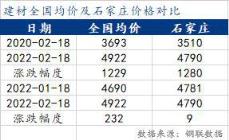 根據(jù)數(shù)據(jù),截至2月18日,螺紋鋼全國均價(jià)4922元/噸,較上月19日上漲了232元/噸,較去年同期上漲了1229元/噸;石家莊地區(qū)建筑厚壁無縫鋼管價(jià)格在4790元/噸左右,較上月19日上漲了9元/噸,較春節(jié)后高點(diǎn)跌了230元/噸,當(dāng)前價(jià)格較去年同期上漲1280元/噸。當(dāng)前市場(chǎng)價(jià)格遠(yuǎn)高于去年同期水平,但春節(jié)后價(jià)格上漲、下跌均快于全國平均水平。
