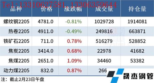免責聲明:本網站(山東聊城晟杰無縫鋼管廠m.www-86604.com)刊載的“2022年02月23日午報:鋼價多數下跌,黑色期貨低開高走”等均源于網絡,版權歸原作者所有,且僅代表原作者觀點,本文所載信息僅供參考。轉載僅為學習與交流之目的,如無意中侵犯您的合法權益,請及時聯系刪除。本網站刊登此篇文章并不意味著本站贊同其觀點或證實其內容的真實性,我們不對其科學性、嚴肅性等作任何形式的保證。如果侵犯了您的版權,請盡快聯系我們予以撤銷,謝謝合作!
