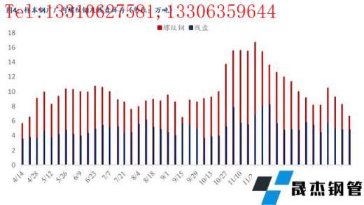 3、無縫厚壁鋼管廠家本身生產情況來看,本周鐵水產量幾乎無變化,無縫厚壁鋼管廠家繼續保持相對高位水平的生產節奏;螺紋因xg新接部分鋼坯訂單故減少了螺紋的產量,使得本周總產量減少,盤線則變化不大,生產與上周近乎持平。